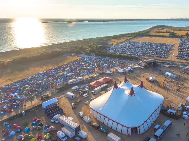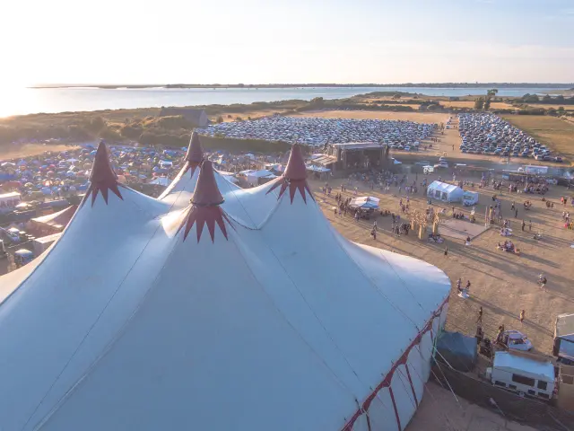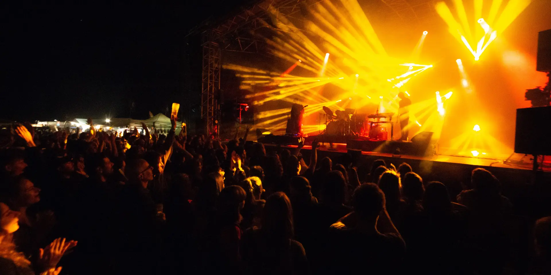 The crowd in high spirits under the bright concert lights.